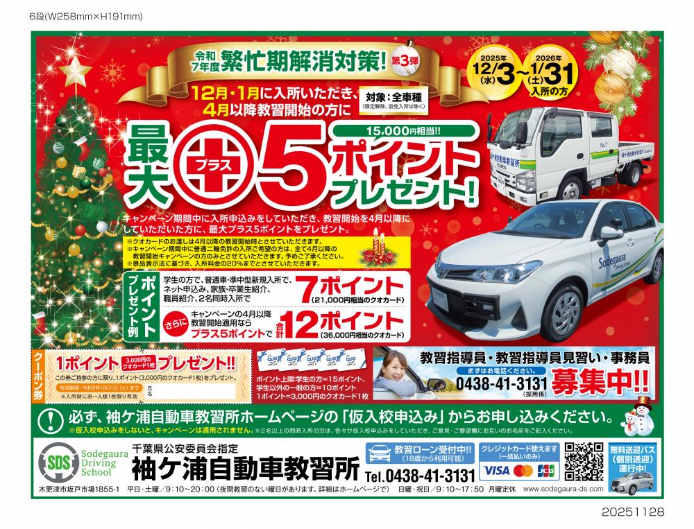 令和7年度 繁忙期解消対策第3弾! 12月・1月に入所いただき、4月以降教習開始の方に 最大5ポイント、プラス・プレゼント!